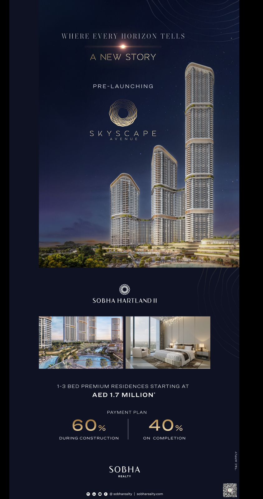 Skyscape Avenue, wo Luxus auf unvergleichliche Ausblicke trifft. Dieser Wohnturm definiert urbane Eleganz neu mit seinen atemberaubenden Aussichten, luxuriösen Annehmlichkeiten und großzügigen Apartments. Der Turm bietet den Bewohnern die Wahl zwischen Ein- bis Drei-Zimmer-Wohnungen, die alle einen außergewöhnlichen Blick über die Skyline der Stadt bieten. Jede Wohnung ist mit großen Fenstern ausgestattet, die kunstvoll die Panoramablicke einrahmen und eine ständige Verbindung zur umliegenden Landschaft fördern.